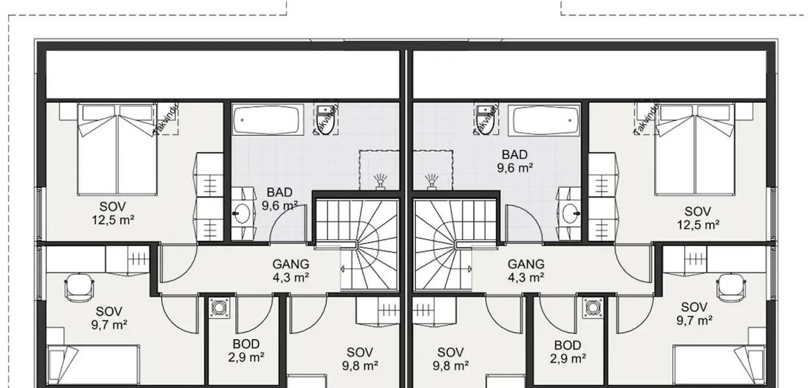 Mesterhus Norhild er en herskapelig og smart tomannsbolig med utbygd midtseksjon og svært praktisk planløsning.